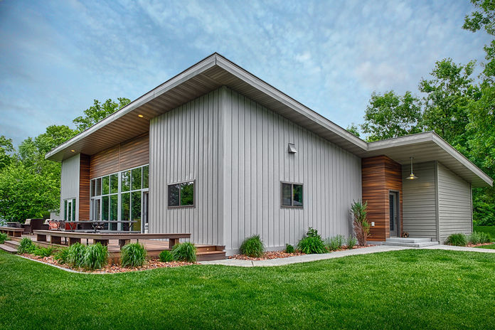 Another large driver for the design was the lakeside window system. To capture the best view of the lake, and due to the height and the way the roof pitches upward, the team used commercial, storefront windows to achieve an unobstructed. Additionally, the exterior finishes, needed to be durable, since the retired owner still traveled a lot.
